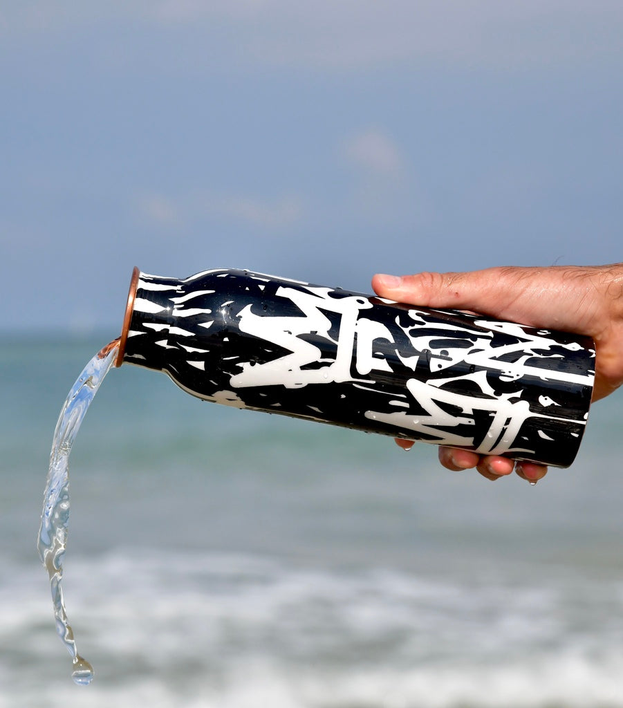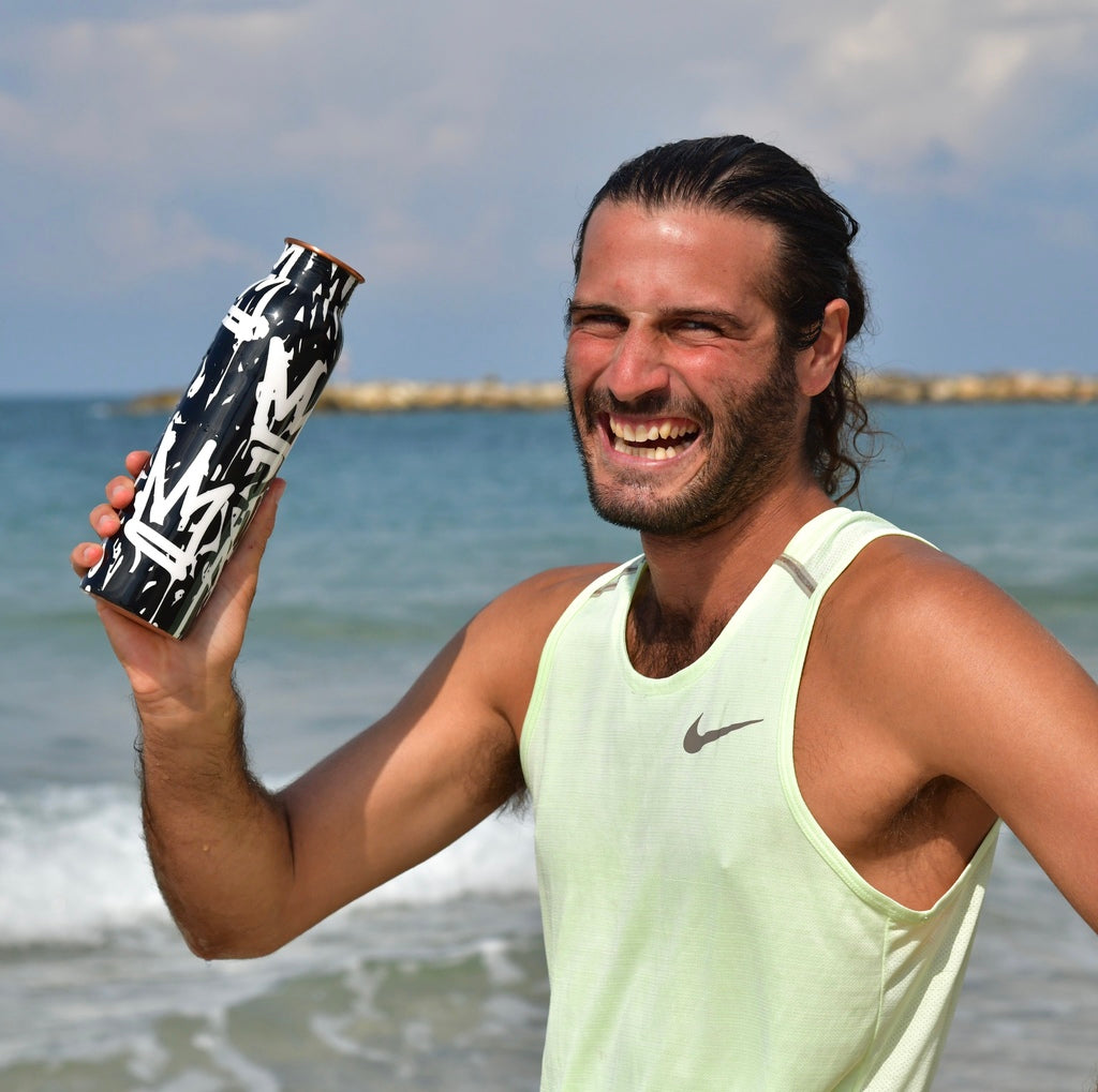 Pour permettre au processus oligodynamique (libération des ions de cuivre en petite quantité dans l’eau) de se faire, il faut remplir sa bouteille en cuivre avec de l’eau 6h à 8h avant de la boire. Le soir est donc le moment idéal pour cela, car vous pouvez laisser la bouteille en cuivre sur votre table de nuit et la boire directement au réveil. L’eau est ainsi bien ionisée et la boire le matin permet de mettre en route le système digestif et renforce le métabolisme. Vous pouvez également boire l’eau de votre bouteille en cuivre au cours de votre journée et la re-remplir au besoin.
